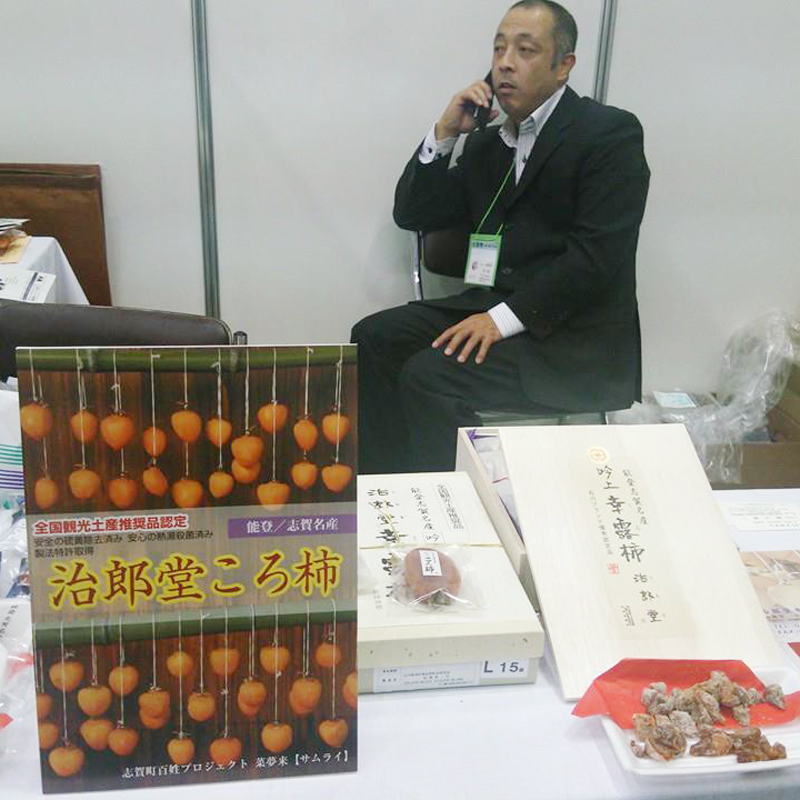 地元の特産品「ころ柿」の特許製法を持つ治郎堂幸露柿も担い手不足に悩まされていると知った石村はすぐに製造元を訪問。平成25年、事業譲渡を受ける形で食品加工業の営業も開始しました。